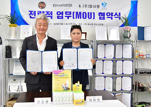 생활용품 전문기업 ㈜맘사랑(대표 신승용)이 황정리세계무술총연합회(회장 이미영)와 전략적 업무협약(MOU)을 체결하고, ‘BMW5000 프로젝트’와 ‘스마일어게인 캠페인’을 공동 추진한다고 4일 밝혔다. 이번 협약은 헬스케어 제품을 중심으로 문화·레저·웰니스 산업 전반에서 공유가치 창출(CSV) 모델을 실현하기 위한 것이다.